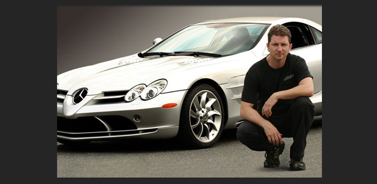 The mechanic who works on my car has the distinction of being one of a handful of people certified to work on the Mercedes SLR. I took this photo one day when I stopped by his shop. It's easy to get a great shot when you have a car like that sitting in the background.