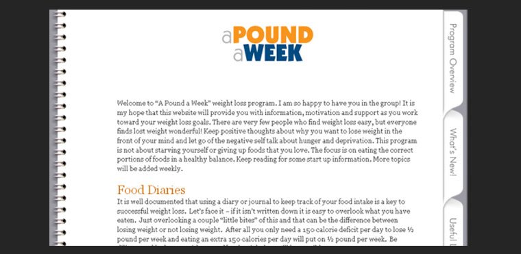 "aPound aWeek" is a personal training program. Rather than have it look like a typical website, I came up with a design that functions like a handbook. Very easy to understand because it puts the material into a natural context.